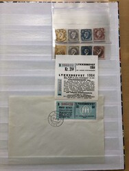 Lot in stockbook with two cpl. sets Oscar I, one set with numeral "253" Sandefjord and one set with very well place "LAURVIG", five copies of "Lyckebrevet" and a small MNH collection Posthorn issues to 1940s (F= ca 30.000). All pictured on our website.