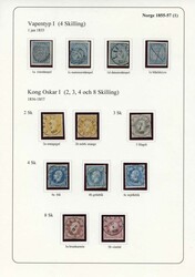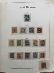 Collection with unused stamps 1855-2024 with exception for 2004 and 2007-2009. Early part in slightly mixed quality, 4 skilling 1855 with removed ink cross, some Oscar I and Coat of Arms seemingly regummed. Somewhat specialised Posthorn section incl. better stamps, e.g. very well centered copy 12 øre unshaded posthorn (small thin). Later issues with, e.g. nice copies of Haakon VII 1907 and 1909 with one lightly hinged and one never hinged 2 kr., hinged set "London" overprints etc. Good section official, postage due and two never hinged return stamps. Some stamps marked * or ** on the pages, not always correct. Very high face value on later years. Please inspect.