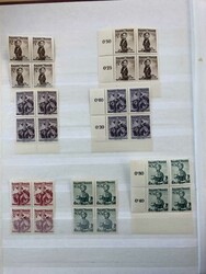 Stockbook with MNH blocks of four of Traditional Costumes 1948 incl. duplicates, in total 51 blocks. Mi=1.480 for four single sets of 34 stamps. Also MNH blocks of four of Birds Air Mail stamps 1950-1953, Mi=1.416. All pictured on our website.