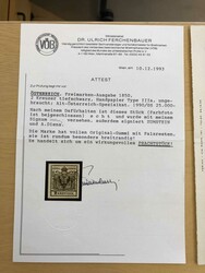 Complete & Specialised Collection 1850-1963 A fantastic collection in two elegant Lighthouse albums. Partly specialised through the album pages and also a lot of extra pages made up by the collector. The quality is a bit mixed, especially in the early parts, but many beautiful and high quality stamps, a large number of certificates are included. Beautiful unused copies of the first set as well as used, e.g. Mi. 1y ** (cert.), many copies Mercury incl. two yellow, the 2nd is type Ib, both with small faults and certs Ferchenbauer. Further on a lot of specialisation, diff. types, used and unused, many **, Mi. No.l 23 with margin at bottom, 49a & 49b **, 1908 Jubilee set ** incl. 10 kr. and others on the rare grey paper. Thereafter most seem to be **, e.g. Express stamp 1917, Mi. 219C, in ** pair, the lower stamp with an extra perf. line, covered with a red annulation line, cert. Ferchenbauer & Stastny, WIPA 1933 on both papers + minisheet, Dolfuss **, Mi. VI-VII (unissued 1946) ** and Renner 1946 in a set as well as the sheetlets**. Back of the book is strong with a specialised Postage Due section, an unusual page with Court Delivery Stamps, some fiscal stamps incl. a cover, Telegraph stamps incl. 60 kr. 1873 small faults (cert.), good Newspaper Tax Stamps etc. From other areas an important part from Lombardy and Venetia incl. a 30 c. canc. on the 2nd Day, 2.6 1850 with cert., many good unused stamps with original gum, e.g. Mi. Nos 1 (Sassone 1i), 11II, 12, 13, 16, 17, 18 etc. Fiscal stamps, not 50 c., 10 c. with small faults and a good 75 c., both with certs., also two covers. Levant is also specialised and there is a small section Donau Steam Navigation Co. incl. a cover. Finally Bosnia & Herzegovina well represented and followed by all the Field post areas from that period. Certs and all pages scanned on our website. AN OUTSTANDING OFFER