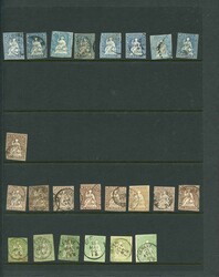 Collection 1850s-1970s with used stamps and a few covers beautifully mounted on home made pages in four albums. Contains several better stamps and is somewhat specialised with different papers, perforations and shades etc. Also a well filled section "back of the book". Example pictures can be viewed on our website but careful inspection recommended.