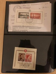 Extensive lot of many covers and cards, but also nicely cancelled stamps, blocks of four, combination printings and minisheets and a selection of 25 different minisheets on covers incl. all the good ones except NABA 1934 (SBK more than CHF 3.200 just for these). Further a collection of blocks of four Pro Juventute, nicely canc. and in cpl. sets 1929 onwards. Also 36 soldier´s cards from WWII, mostly used, not counted in the catalogue value. Total cat. value SBK 2020 CHF ca 13.000 + the soldier´s covers. List of contents and partly scanned on our website