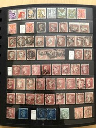 Lot with stamps on almost 100 stock pages 1840-modern mostly used a few unused included, e.g. 1 sh. 1887 MH. Many with readable canc., some better watermarks, e.g. two copies of 2½ d. blue 1880 with inverted wmk. Also some high values in mixed quality. Part of lot pictured on our website.