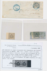 An exceptional registered letter with full contents with 5 & 40 c. Provisional Government from Reggio 10.1 1860 (wrongly dated 1859 inside). Very fresh and full margins. Sass. No. 12+17 €23.000 for this franking. Cert. Enzo Diena and sign. A. Diena. VERY FINE & VERY RARE.,Live Auction