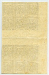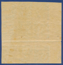 GUTTER BLOCK of 32 with 8 gutters of 5 c. with dot after "5". Sheet margin and full cutting lines on all sides. Two hinge marks affecting two pairs. As usual bent in the gutters. Sass. # 7 €5.680+++ for just 8 pairs and 16 singles in hinged condition. SUPERB & SCARCELive Auction